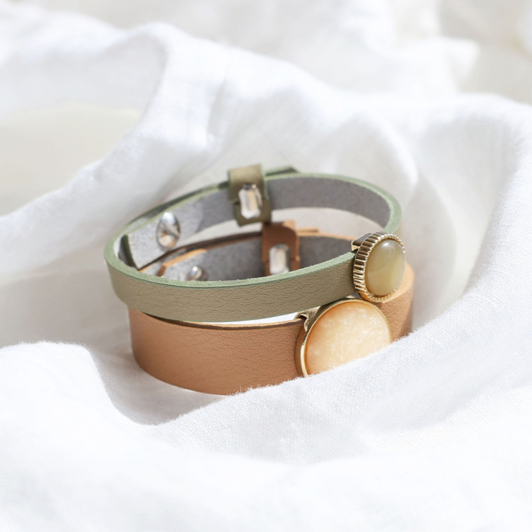 This new series includes Cuoio bracelets for him and her! Choose various colours and personalize the bracelets with matching cabochons from the online collection. This way, you can change the bracelets into a trendy collection in no time!