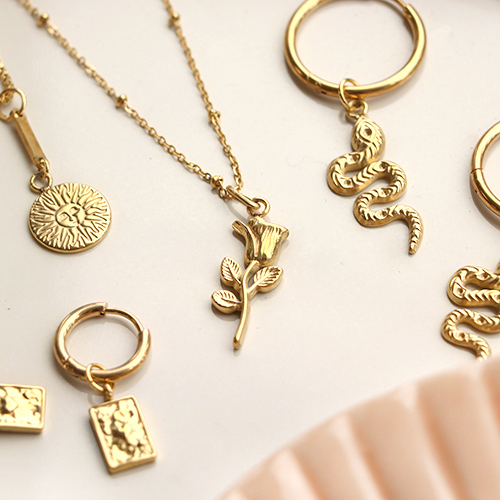 Are you looking for inspiration on how to use different charms in your jewellery? In this inspiration set we will show you how to make trendy and stylish necklaces and bracelets with stainless steel charms. A nice way to design a necklace according to the latest trends is by making a layered necklace. This is a double or triple necklace where each belcher chain has a different length. You make 2 or 3 belcher chains with charms that you fix on one clasp. Use different sorts of belcher chains for a super elegant and stylish outcome. Combine fine or chunky belcher chains with stainless steel charms to make bracelets. You can fix the charms on the belcher chain but also for example on the clasp. Complete your jewellery with stainless steel material like jump rings, clasps and extension chains to realise a collection of high quality jewellery.