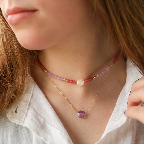 This new collection of natural stone charms is available in various shapes and beautiful colours. The charms are perfect for stacking necklaces. Combine beautifully with braided macramé wire, colourful pearls and various beads.