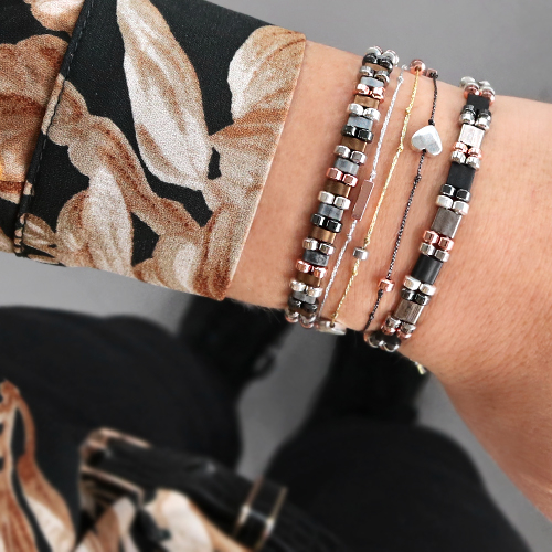 Making jewellery with hematite beads doesn't have to be difficult at all. You can go create any jewellery item with the hematite beads, but we have chosen to make minimalist jewellery. We combined the hematite beads with macramé bead cord metallic for a fantastic shine. Also the Miyuki beads tila are super fun to use to make bracelets with. You can make earrings easily by using our earring findings and combining the hematite beads with top faceted beads, for example. Good luck!