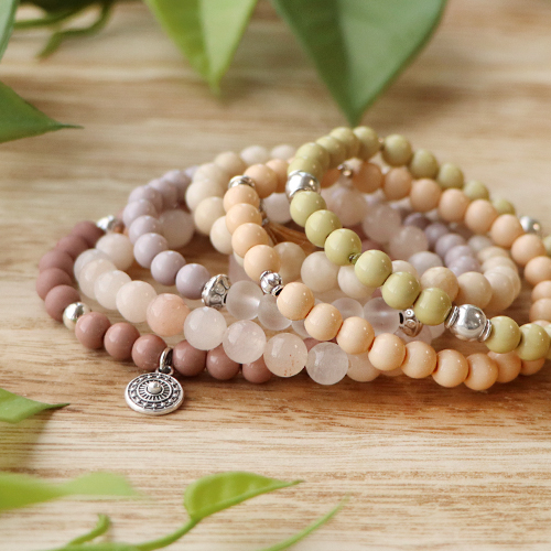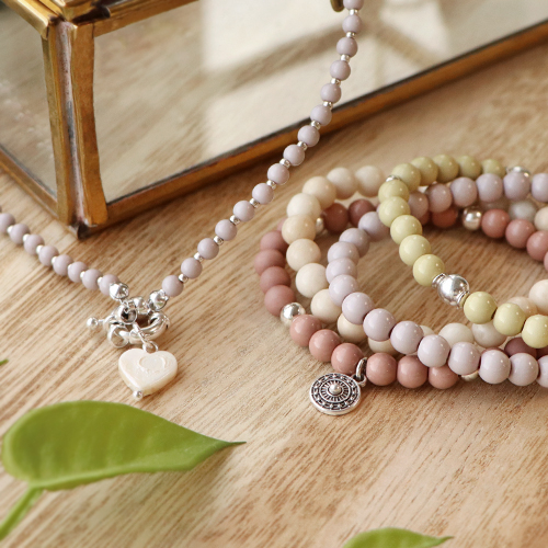 By using elastic cord, you can create the most beautiful bracelets in a short amount of time. Combine the acrylic beads shiny with the acrylic beads matt from the collection to create an elegant look and alternate the beads with DQ European metal beads. Finish your creation by attaching a beautiful charm to your bracelet. Present and sell the two bracelets in a trendy way by putting them on a jewellery card.