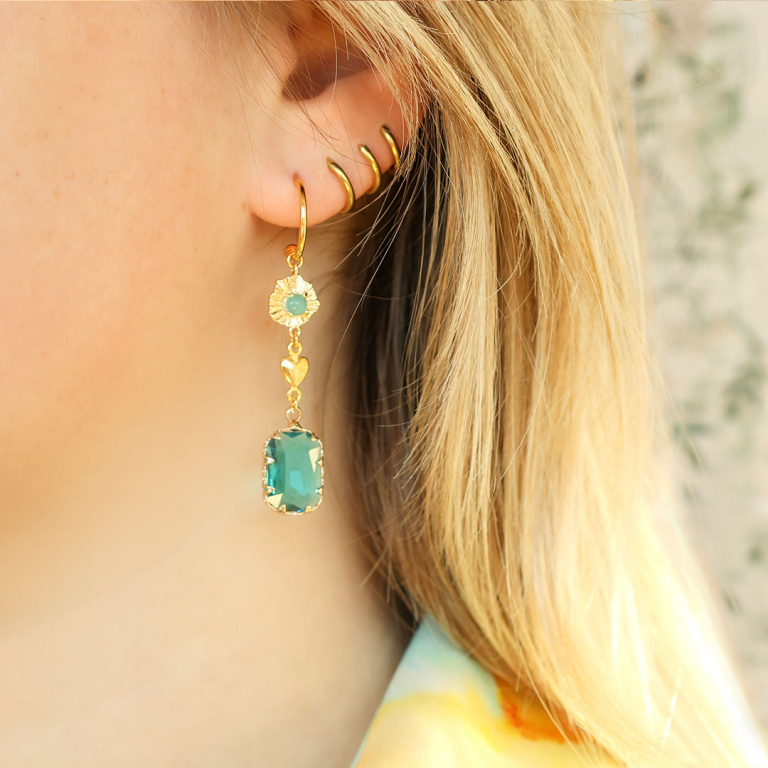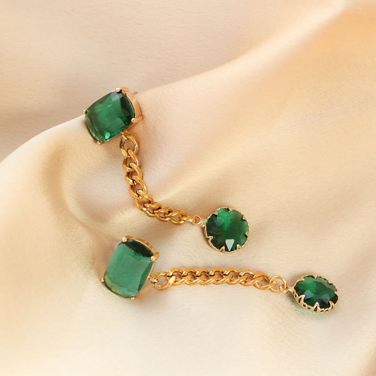 Crystal Glass earrings / earpins with loop rectangle Green-Gold