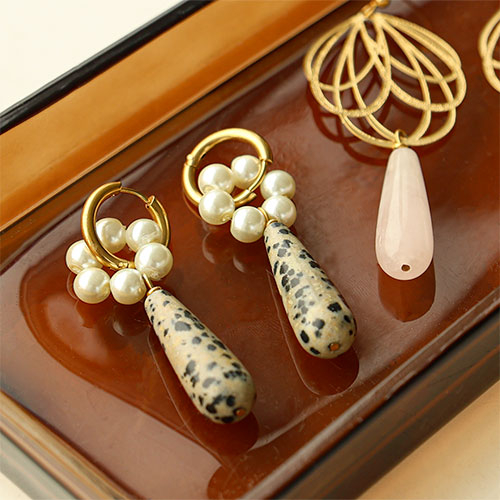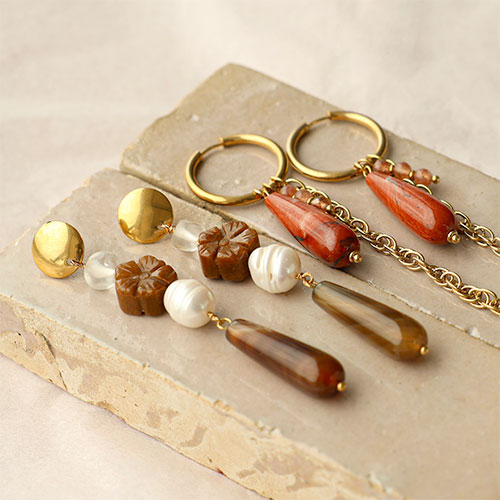 This new collection includes natural stone drop beads in various types of natural stone. Combine the drops with freshwater pearls and glass beads from the collection to design elegant and eye-catching earrings. Perfect for any occasion!