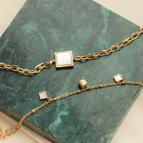 Stainless steel charms shell rectangle Gold-White (natural colour)