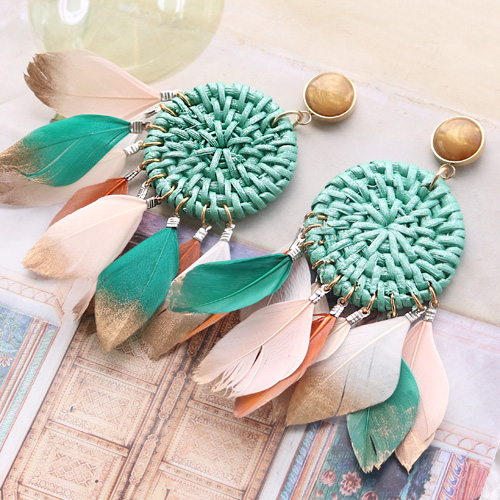 Festival jewellery inspiration with feathers and rattan pendants