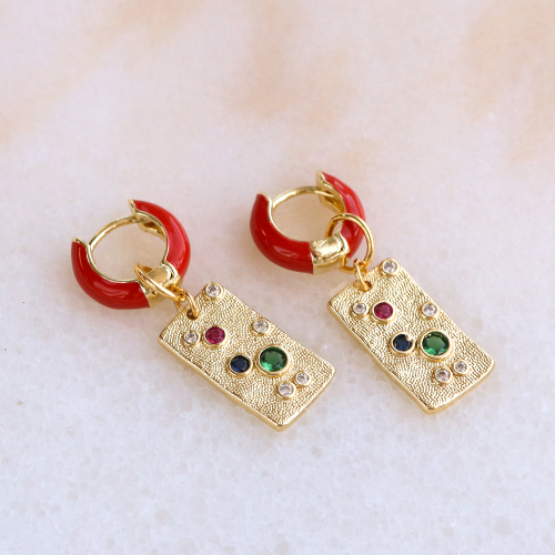 Trendy earrings creole enamel 15mm Red-Gold
