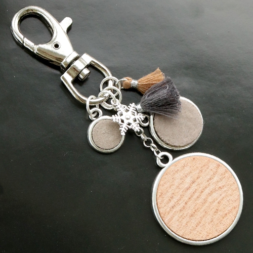 Jewellery and keychains with DQ leather cabochons.