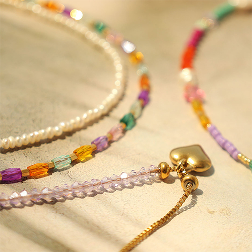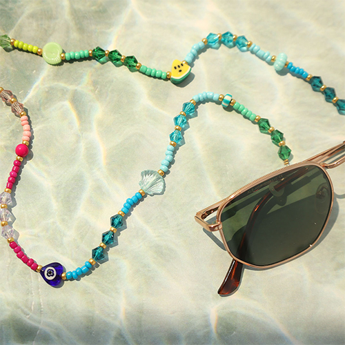 You can use this new series of top faceted beads bicone and tube in all of your jewellery. Combine the top faceted beads with glass beads rocailles, freshwater pearls and polymer beads for necklaces you can stack or for a trendy sunglass cord!