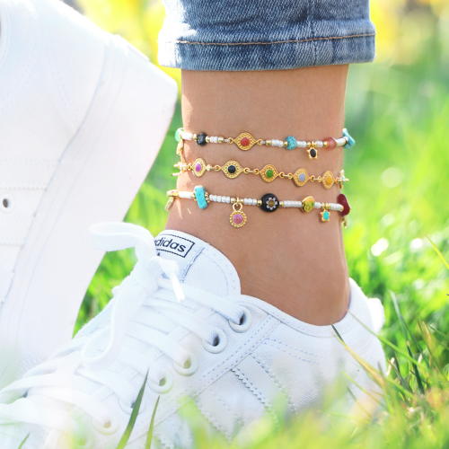 Ready to make some colourful jewellery? Get started with the rainbow DQ European metal beads, charms and connectors! With these fun items, you design the most cheerful necklaces, bracelets and anklets. Make, for example, a necklace by connecting the DQ European metal connectors with jump rings. Attach a lobster clasp, and an extension chain on both sides and your jewellery piece is ready. Create accordingly colourful bracelets and anklets. Combine the DQ European metal beads and charms with Miyuki beads, chip stones and Millefiori beads. Thread all items on a macramé bead cord and finish with a square knot. Hang colourful tassels on the end of the thread to complete the jewellery. Now it's your turn, good luck!