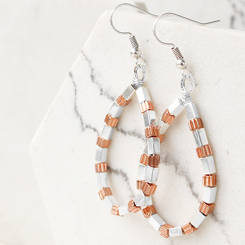 Do you love the new hematite beads but don't you know what you want to make with them? Get inspired! We have made some bracelets on elastic cord and beadalon metal wire. You can easily do this by threading hematite beads and matching DQ European metal beads and charms over the desired stringing material. If you use elastic cord, you can close it by tying the ends. With metal wire you close the bracelet by using crimp beads, jump rings and for example a lobster clasp. The hematite beads are also great beads to make earrings with. Thread the beads on artistic wire and create a drop shape by attaching the wire to your favourite earring finding. Now it's your turn, good luck!