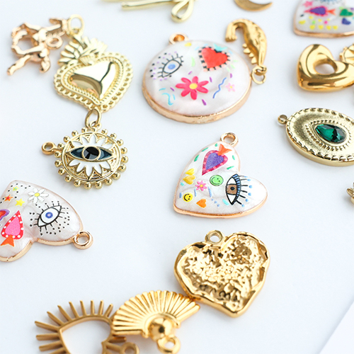 This new collection of funky metal charms with enamel in gold colour is a real eye-catcher! Combine the charms with belcher chain and different types of charms for a unique, playful necklace. Mix, match and create your funky spring collection!