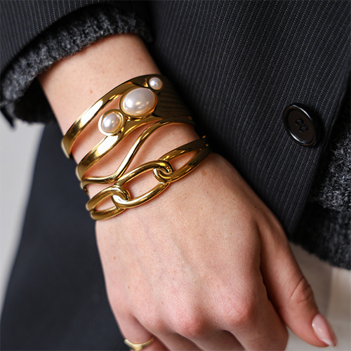 Stainless steel bracelets bangle with imitation pearls Gold-White