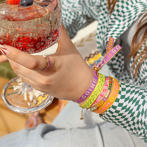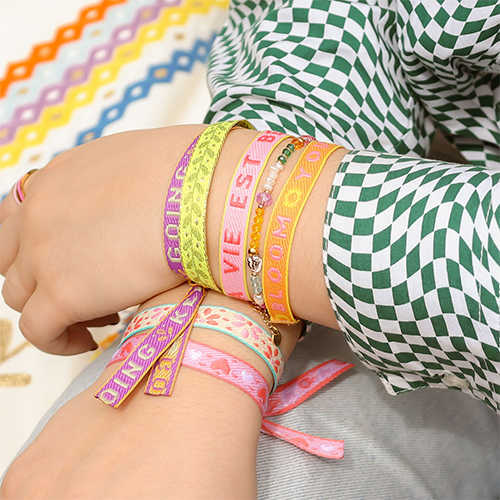 New series of ribbon with text own designs. The ribbons are exclusively designed by our own design team. Cut the ribbons to size and close them with a smart bead stopper or ribbon clips for the most beautiful bracelets, chockers and anklets. Combine them beautifully with jasseron.