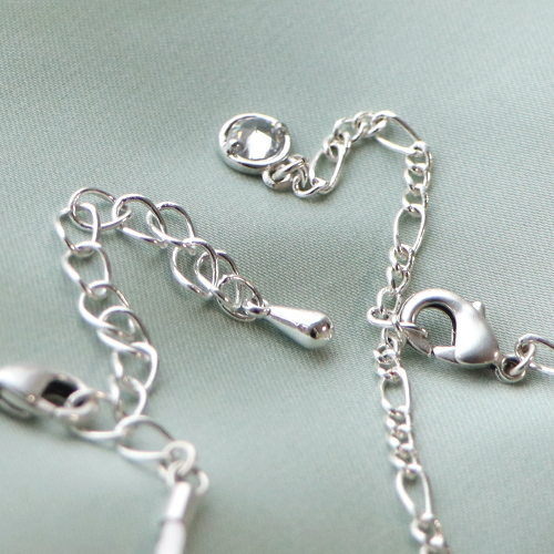 Create trendy bracelets with metal wire or satin wire, DQ beads and freshwater pearls. If you work with satin wire, you can close your bracelet using a smart stopper bead and finish it by putting DQ metal beads onto the extremities. Create simple earrings with creoles on which you attach for instance a crystal pendant. You can also create small flowers with Artistic Wire and beads which you wrap around the creoles for a beautiful outcome!