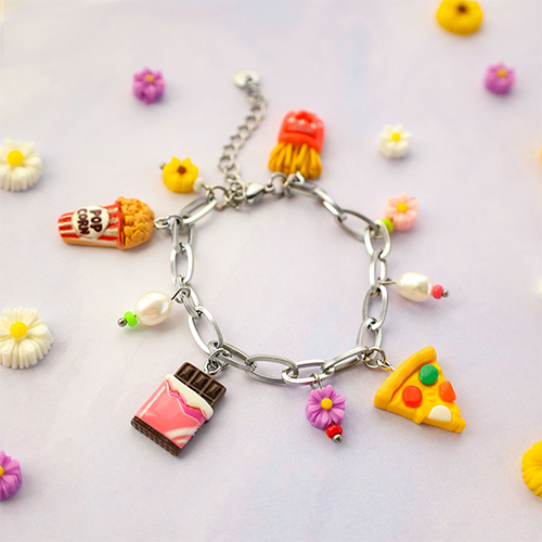 What is more fun than happy resin charms and beads in the shape of flowers and food for summer bracelets and necklaces? Combine the flower trend together with resin charms food for trendy bracelets and necklaces.