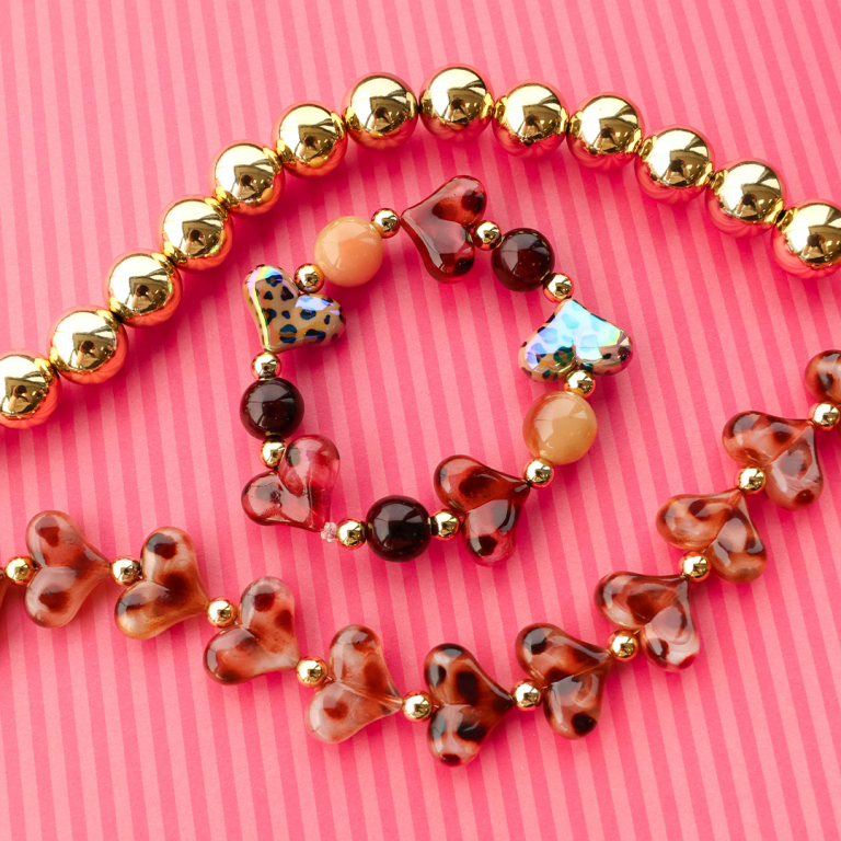 How will you use our new heart collection? Our acrylic heart-shaped beads come in different sizes, bright colours and fun prints, perfect for bold necklaces, bracelets, a statement charm or a trendy phone strap. Colourful, playful and versatile