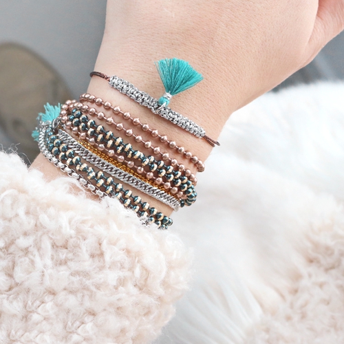 With the new stringing material of Beads Wholesale Online, you can design the most multifaced jewellery pieces. Minimalistic jewellery of stainless steel belcher chain for example or maybe layered necklaces of coloured ball chain? We love it! Finish off this jewellery set with a macramé bracelet of metal style wire!