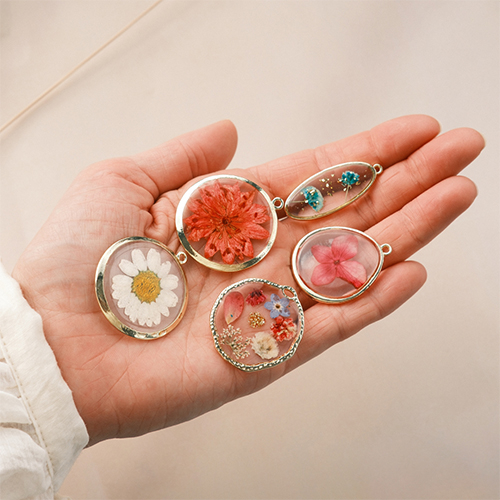 • Charms and connectors with dried flowers