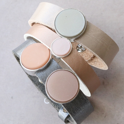 Are your ready for the Holidays? With these bracelets you definitely will be. We are completely in love with metallic leather and we just can’t get enough. The bracelet is pretty to wear on its own, but it’s nice to add a little extra. In this case the extra can be a pretty cabochon on a slider setting. Maybe a Polaris Elements cabochon or a wooden cabochon with a cute holiday design? The best thing about Cuoio bracelets in combination with cabochons is that you can change them whenever you want and make different combinations with just one bracelet. Wear your bracelet with every party outfit. For the upcoming holidays you’ll just need one bracelet..