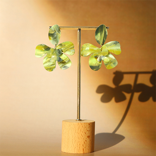 Trendy resin earrings / earpins flower Multicolour Green