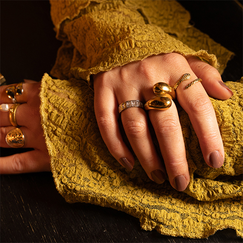 • Stainless steel rings with natural stone Gold-Golden Brown