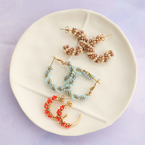Trendy earrings beaded twisted Multicolour-Gold