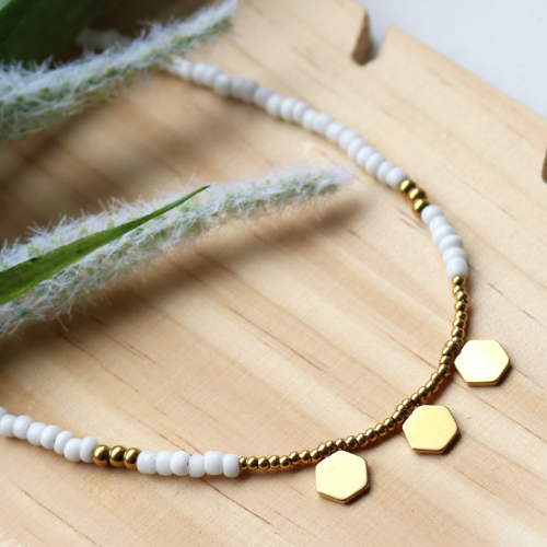 This trendy jewellery can be made with glass seed beads and stainless steel charms: