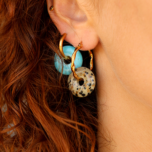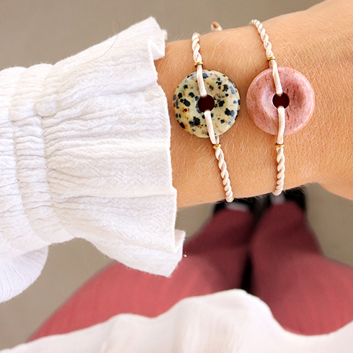 Lover of trendy jewellery with a unique look? Then it is super fun to get started with the latest natural stone disc charms. These natural stone charms give your jewellery a beautiful exclusive look with an absolute wow factor. You can slide the natural stone disc charms over an earring finding such as a stainless steel creole and the earrings are ready. Or use belcher chain by taking it through the natural stone and attaching it to the eye of the earring. With satin wire you can make fantastic bracelets. Use two pieces of wire and twist or knot this on the charm in your own way. Close the bracelet with a sliding button. Good luck with these tips and inspiration!