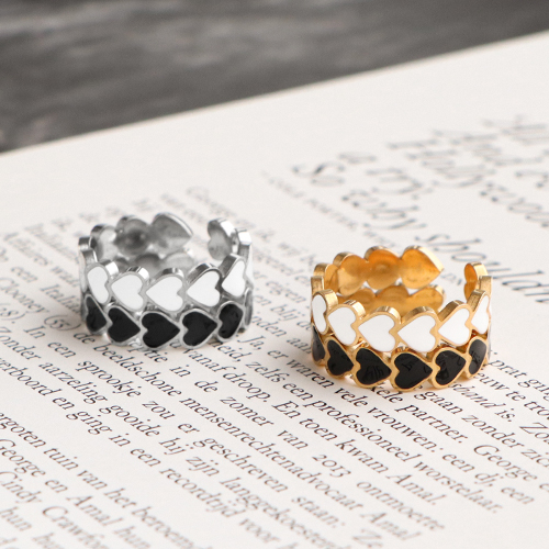 Stainless steel rings enamel heart White-Gold