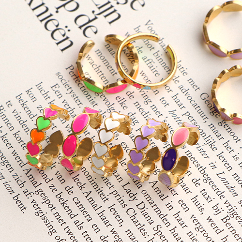 Stainless steel rings enamel heart Neon Multicolour-Gold