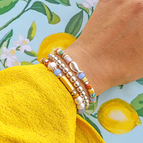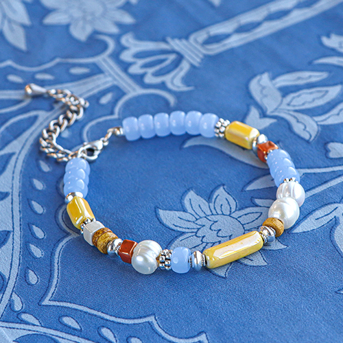 What is more fun for your clients than to discover a bracelet collection that fits everyone? By alternating ceramic beads with for instance freshwater pearls, Katsuki beads or beautiful DQ metal beads, you will instantly create magnificent bracelets. When you attach the clasp, don’t forget to add an extension chain or close your bracelet by creating a sliding knot so you can adjust the size.