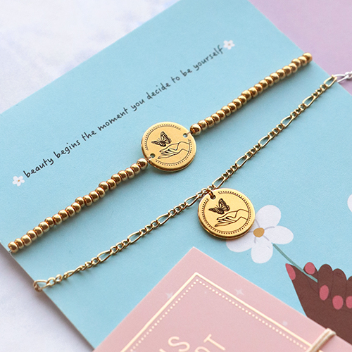 Get inspired and get started with the Girls Support Girls collection! Within the collection, you find charms, connectors and jewellery cards matching the theme of supporting women. Make a simple but stylish necklace by attaching the Girls Support Girls charm on the DQ European metal belcher chains. Moreover, it’s also fun to make bracelets with the connectors and macramé bead band. Thread the macramé bad band through the connector and close the bracelet with a sliding knot. By sliding the bracelet over the pink Girls Support Girls card, your ready-made jewellery piece is ready for sale. There are, of course, many more possibilities for making bracelets combine, for instance, the charm with golden DQ European metal beads or Miyuki beads. Be creative and create the most stunning jewellery. The jewellery cards are the finishing touch for a perfect gift.