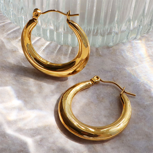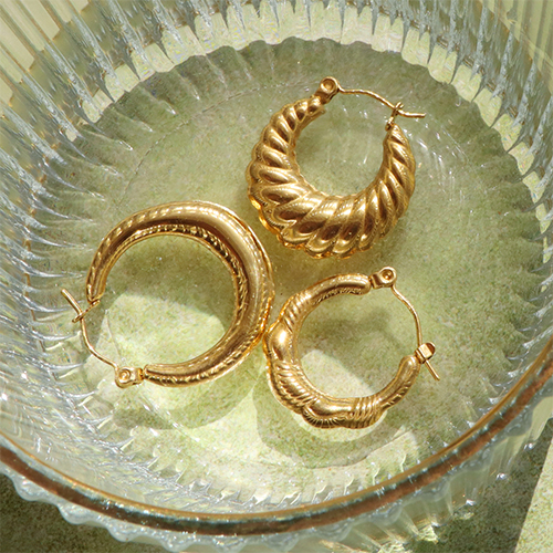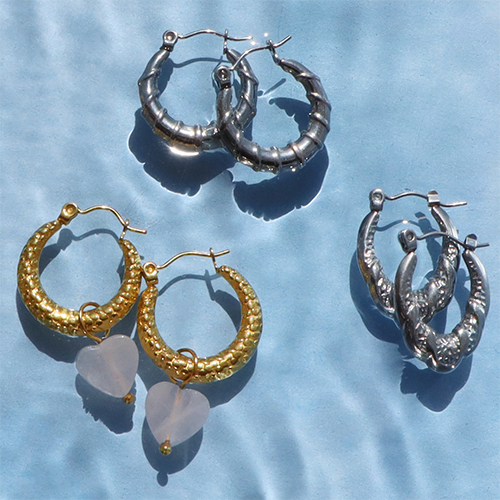 Discover now the different designs of this new series of stainless steel earrings! All variants are available in gold and silver colours. You can wear the earrings as they are, or personalise them by adding a ready-made charm or a self-made one.