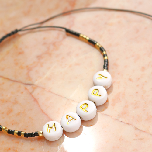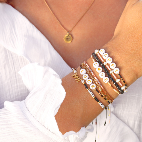 Are you completely in love with those cute minimalist bracelets with beads? Shop the latest trendy Miyuki bracelets with letter beads now. These bracelets are made of macramé bead cord, Miyuki beads and letter beads. Each bracelet has a sliding macramé button. This allows you to adjust the size of the bracelets. The bracelets each have their own text with letter beads and they are available in two different colours. Tip: they are also very nice to combine with other bracelets or to present/gift them on a jewellery card.