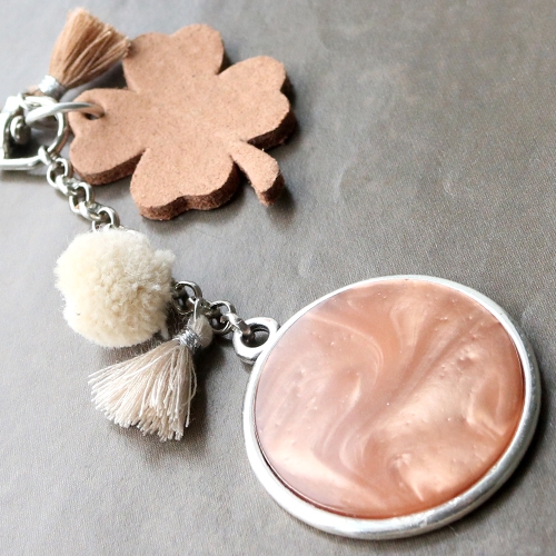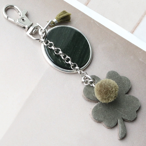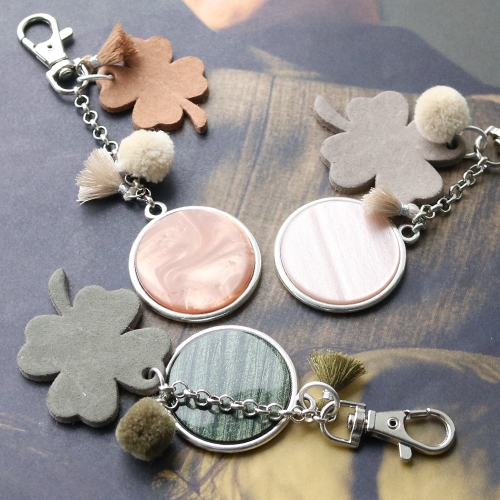 Design trendy keychains with new DQ leather pendants in clover shape. Use these lucky leaf’s in combination with Polaris Elements cabochons, tassels, pompoms and belcher chain. Use different colours in one keychain or mix different products in the same shades in one keychain.