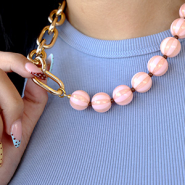 16 mm DQ® acrylic beads with stripes Pink-Golden Brown